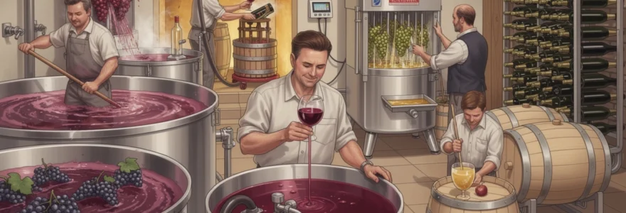 La vinification en rouge constitue l’art le plus complexe de la transformation du raisin en vin. Cette méthode repose sur un principe fondamental : extraire couleur, arômes et tanins des parties solides du raisin grâce à une macération prolongée. Le processus débute dès la réception de la vendange, moment critique où la qualité des raisins détermine déjà une grande partie du potentiel du vin final.